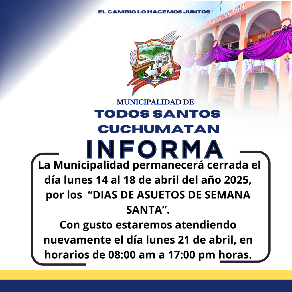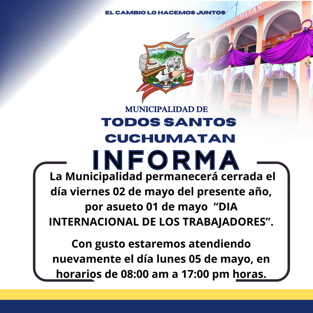 ¡OPORTUNIDAD DE TRABAJO! La municipalidad de Todos Santos Cuchumatán, estará contratando Personal Educativo (Aplica Hombre o Mujer) en: 1. Maestros de Nivel Media. 2. Maestros de Nivel Primaria. Para mayor información comunicar al Tel: 3167-6423 o envía tu CV al correo electrónico de la municipalidad: munitodossantos1@gmail.com Fecha de la recepción de expediente 19 al 30 […]