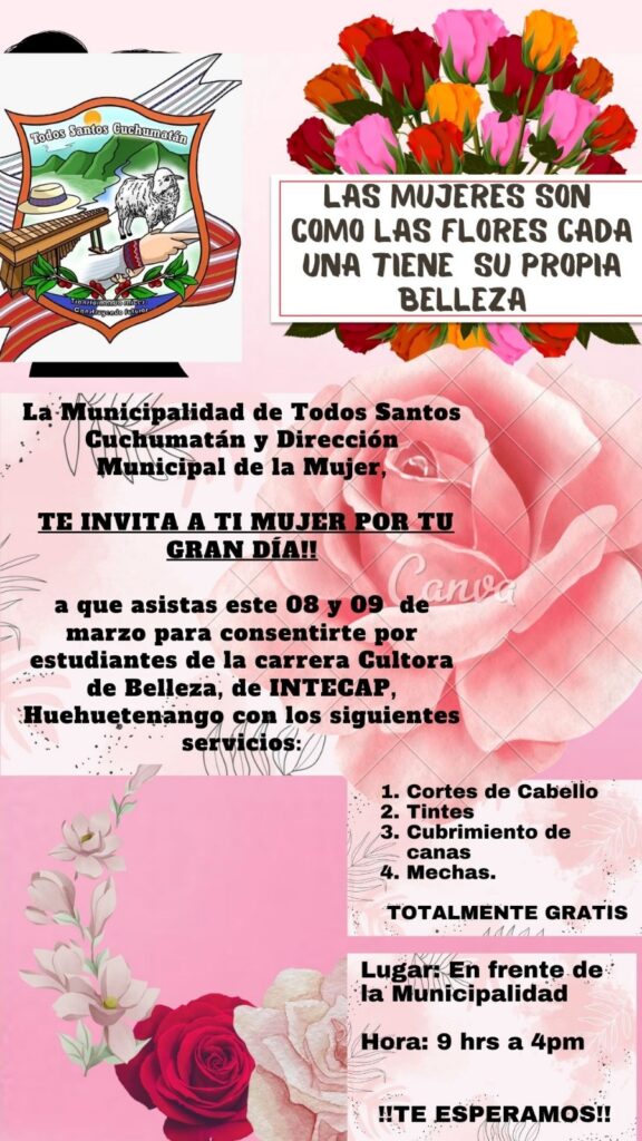 La Municipalidad de Todos Santos Cuchumatán Administración 2024-2028, hace la cordial invitación a todas las mujeres Todosanteras, para conmemorar el Día Internacional de la Mujer.