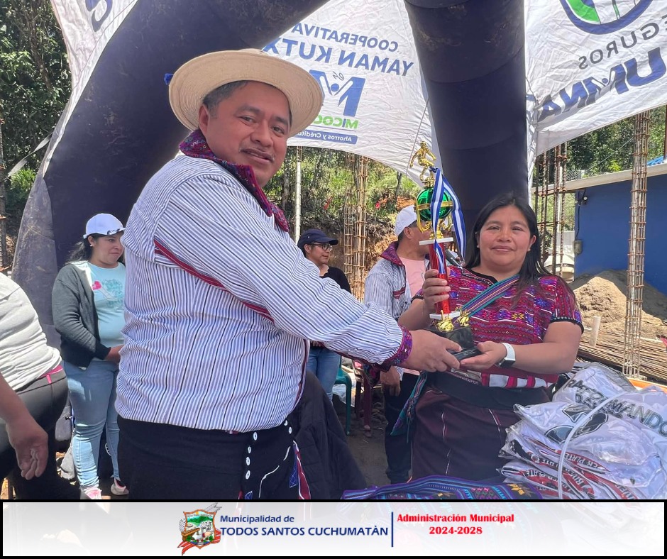 El Sr. Alcalde Tomás Pablo Ramos y su Corporación Municipal realizaron la entrega de premiaciones a los primeros tres lugares en la rama masculina y femenina de las Olimpiadas del nivel primario del Sector Centro y de la Región Sur del municipio de Todos Santos Cuchumatán, llevadas a cabo en el caserío Tres Cruces y caserío Teogal. 👏🎉