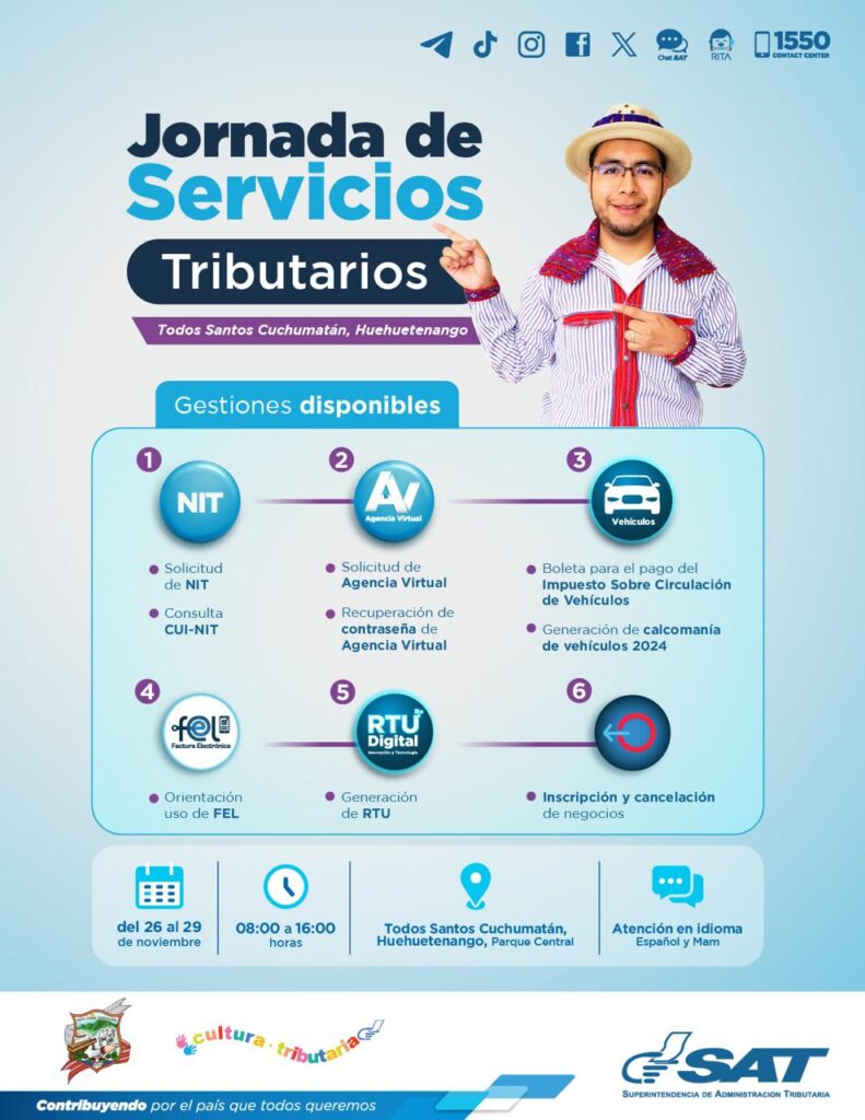 Ven, por este gran servicio que proporciona la agencia SAT y con el apoyo de la municipalidad de Todos Santos Cuchumatán.