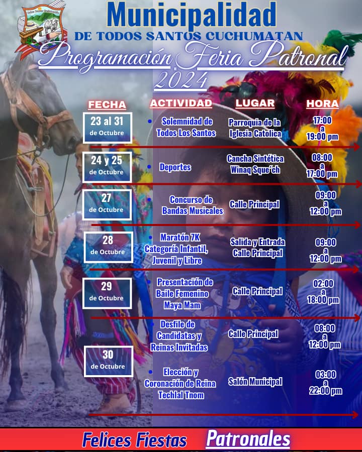 LA PROGRAMACION DE LA FERIA PATRONAL DE TODOS SANTOS CUCHUMATAN 2024