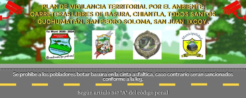 Lanzamiento del Proyecto, Plan de vigilancia territorial por el ambiente: carreteras libres de basura, Chiantla , Todos Santos Cuchumatán, San Pedro Soloma, San Juan Ixcoy.